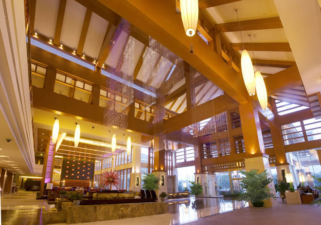 張家界五星級(jí)酒店-武陵源國(guó)際度假酒店是由張家界泰和投資有限公司投資3億余元興建,集湖湘文化、湘西部旅游文化、土家族民俗民風(fēng)演繹于一體的五星級(jí)國(guó)際綜合性度假旅游飯店。酒店總占地面積3.7萬(wàn)平方米,其中建筑用地面積1.1萬(wàn)平方米,酒店總建筑面積4.2萬(wàn)平方米。酒店于2007年03月08日開(kāi)業(yè),功能設(shè)置有豪華山景客房、豪華園景客房、行政樓層、特色套房、豪華總統(tǒng)套房等各類客房總計(jì)455間(套).多個(gè)特色中西餐廳,其中豪華大氣的泰和盛世中餐廳面積680平方米,可同時(shí)容納500人用餐;豪華宴會(huì)廳可容納700人的會(huì)議或用餐;另設(shè)有11間貴賓廂房、咖啡廳、大堂吧、茶室、池畔吧、行政酒廊。康體娛樂(lè)休閑商務(wù)設(shè)施齊全,商務(wù)中心、桑拿、健身室、游泳池、健康水會(huì)、KTV包房、美容美發(fā)室、網(wǎng)球場(chǎng)、臺(tái)球室、乒乓球室、商店、紀(jì)念品商店等各種服務(wù)項(xiàng)目一應(yīng)俱全。設(shè)有可停180多輛汽車停車場(chǎng),配備了中央空調(diào)、獨(dú)立計(jì)算機(jī)網(wǎng)絡(luò)、背景音樂(lè)、程控電話、閉路電視監(jiān)控、緊急呼救、防火安全等先進(jìn)設(shè)備系統(tǒng),可為中外賓客提供至情至真至美的服務(wù)。