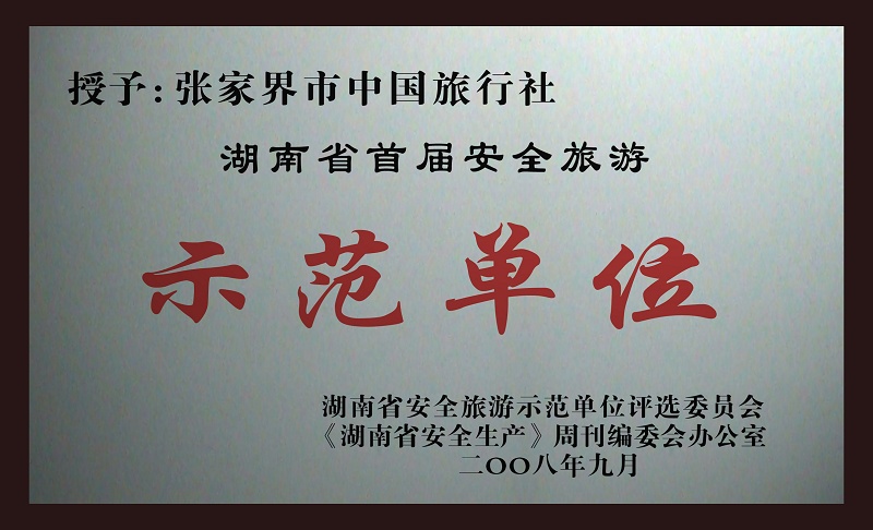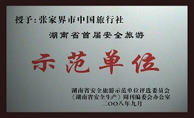 12、2008年9月被湖南省安全旅游示范單位評選委員會授予《湖南省首屆安全旅游示范單位》