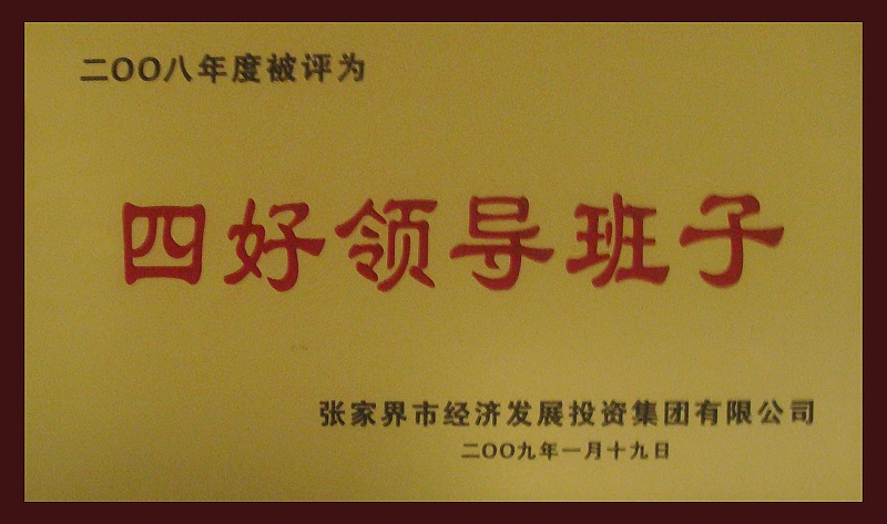 13、2009年1月被張家界經(jīng)濟發(fā)展投資集團有限公司評為《2008年度四好領(lǐng)導(dǎo)班子》