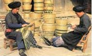 武陵源的苗嶺,以生產(chǎn)楠竹篾器著名。苗嶺竹器的傳統(tǒng)工藝歷史悠久,以用蔑細(xì)勻,式樣美觀而聞名。經(jīng)常上市的有苗嶺竹籠、竹籃、竹椅、背簍和其它竹編裝飾品。這些蔑器常用楠竹作主件,紫竹鑲邊,編制出各種花紋,或用竹蔑的天色采彩裝飾出精美的圖案。來武陵源旅游的人,常常選購(gòu)一兩件苗嶺竹器留作紀(jì)念。 |