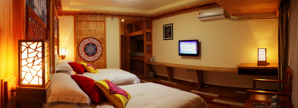 別院特色客房設(shè)有:大床麻將房,電腦大床房,電腦雙標(biāo)間,商務(wù)雙標(biāo)間,閣樓雙標(biāo)間共三十四間,房內(nèi)面積22-26平米,格力空調(diào)柜機(jī),32寸液晶電視機(jī),高速免費寬帶接口。房間用品用具均按五星配置!