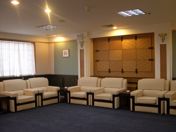 | 多功能國際會議中心 位于酒店二樓,總面積391平方米,可容納250人左右,會議臺可組合成任意形式,擁有電腦幻燈機(jī),活動式展版,閉路電視轉(zhuǎn)播系統(tǒng),有供出租的電腦 及大型顯示屏,電腦投影儀、幻燈機(jī),錄象機(jī),文件粉碎機(jī)。室內(nèi)四周大板玻璃,采光非常好,配有衣帽間、貴賓休息室以及專門的復(fù)印室。 |