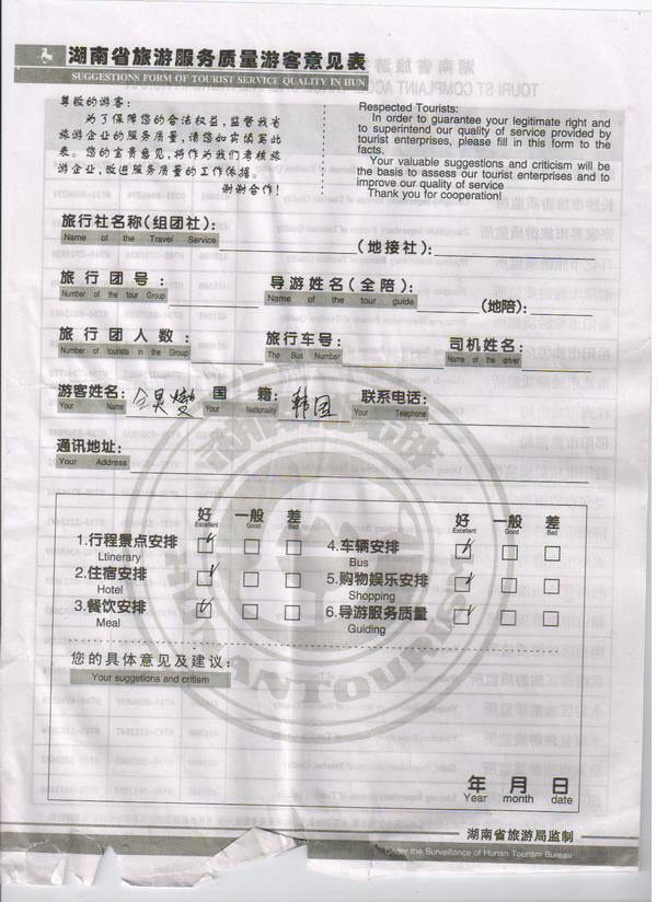 韓國全先生一行4人旅游質量回饋:一切都好!