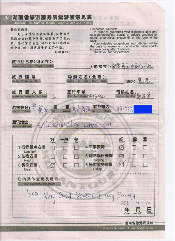 馬來(lái)西亞覃先生一行6人旅游質(zhì)量回饋