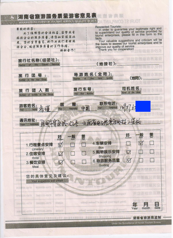昆明張小姐一行19人旅游質(zhì)量回饋