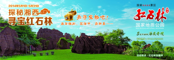 此次紅石林國(guó)家地質(zhì)公園“尋寶”活動(dòng)5月1日開(kāi)始至5月31日結(jié)束,為期一個(gè)月。所有入園游客均可參與景區(qū)內(nèi)的尋寶活動(dòng);顒(dòng)期間,紅石林景區(qū)將在若干景點(diǎn)處藏下裝有禮物號(hào)碼牌的小玻璃瓶,游客若是找到裝有號(hào)碼牌玻璃瓶,即可在景區(qū)出口處兌換具有土家特色的精美禮品。