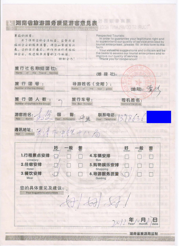 上一篇:湖南夏先生一行11人旅游質(zhì)量回饋單