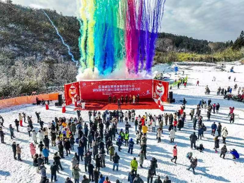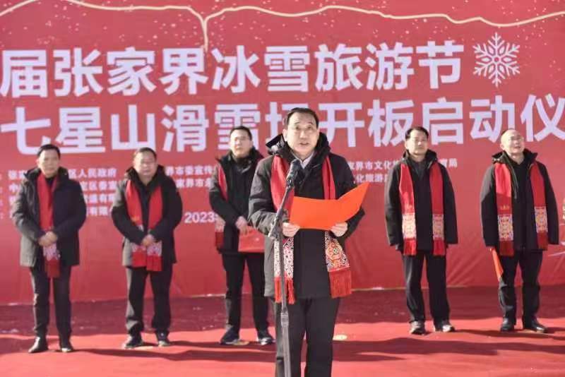 以雪為樂,冰雪為媒。1月18日,海拔一千余米的張家界七星山旅游度假區(qū)里熱鬧非凡,來自市直各單位、永定區(qū)直各單位、旅行社、特邀冰雪運動團體以及官方媒體、自媒體代表歡聚一堂,共同見證首屆張家界冰雪旅游節(jié)開幕和七星山滑雪場開板儀式。