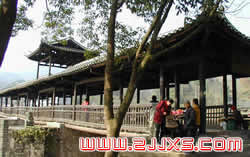 [賀龍橋]賀龍橋原名永安橋,是賀龍?jiān)娓纲R廷宰首倡修建的,它是一座由石墩、木梁、騎廊組成的風(fēng) 雨橋。賀廷宰熱心公益事業(yè),見玉泉河“奔流湍急,道路為!,行人十分不便,于是決定修橋。由于他只是一個(gè)教私塾的文人,修橋工程艱巨,個(gè)人經(jīng)費(fèi)有限,“至斥腴畝以償其負(fù)”。后來,賀龍的祖父賀良仕子代父勞,費(fèi)盡心血,終于在1915年修建成功,深獲遠(yuǎn)近鄉(xiāng)鄰稱頌。 1916年春,賀龍刀劈芭茅溪鹽稅局以后,就在這橋頭成立討袁民軍,賀龍被推為總指揮。1928年春,賀龍、周逸群等為實(shí)現(xiàn)中央“分區(qū)割據(jù)”的戰(zhàn)略部署,返回洪家關(guān)組織3000余人的隊(duì)伍,又在這橋上宣布這支隊(duì)伍為工農(nóng)革命軍。 這座橋因人禍水患,屢遭厄運(yùn)。1929年11月,此橋被反動(dòng)團(tuán)防陳策勛拆毀,1937年秋,當(dāng)?shù)厝罕娂Y重建。1940年5月被洪水沖垮,1950年10月桑植縣政府撥款重修,1952年冬峻工,命名為“賀龍橋”。1998年7月23日,百年不遇的特大洪災(zāi)再次將橋沖走,當(dāng)年12月又由桑植縣人民政府撥款重建,F(xiàn)在我們看到的這座橋就是按當(dāng)年原貌修復(fù)的。