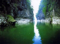 [猴兒跳]位于牛路河段,兩岸千丈,懸崖緊挨,乘船河中仰望僅見一線之天.從此岸到彼岸,猴兒可自由自在跳來跳去,故名曰“猴兒跳”。