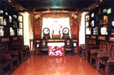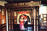 【中堂講解】現(xiàn)在您所走進的是傳統(tǒng)土家建筑的第一間房子,我們稱之為中堂或者堂屋。堂屋是個莊重.講禮的地方,祭祀,婚葬嫁娶一類的大事都要在這兒興行。堂屋正中是神龕,一般土家都得供奉相當豪華精致的神龕,最上面雕的是二龍戲珠,兩邊是丹鳳朝陽,中間是福壽祿三星高照,土家人早晚都在這里朝拜。湘西土家人是多神論的,雖然沒有自己正式的宗教,但是有一定雛形的由巫師主持的原紿教——土老司。土家的土老司為”梯瑪“。做土老司的主要內(nèi)容就是祭祀土王,敬奉土家祖先。如果您有興趣,也可以在這兒 下您的心愿,接受土家神靈的庇護,拜上拜一拜,保您心想事成同,健康長壽。