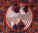 【織錦挑花館講解】它陳列著我們土家繡品中最具代表性的織錦和挑花。挑花是土家婦女的主要編織之一,挑花圖案主要是分組對稱,以花.鳥.蟲.魚等單一的動植物組成各種圖案,處“改土歸流”以后,土家族受漢文化的影響越來越大,不少土家人已懂漢文,以后發(fā)展到人物圖案.文字圖案,一度成為時尚比比皆是。如松柏同年.長生不老.狀元及第.連長升三元等,看到這些刺繡上面繡的文字。(舉例猜謎:“黃金萬兩”.“九千九百九十九”和“福祿壽喜”,前兩圖案巧用文字組合而成,具有很強的抽象意味,“福祿壽喜”則帶著象征和寓意性。)織錦,我們土家人稱之為(西蘭卡普),它距今已經(jīng)有1200年的歷史了,自北宋到明清各朝均是湘西土家人向皇宮進貢的珍貴貢品,按照習俗,土家結(jié)娘從十一.二歲就列始學習織錦,圖案花色由簡到繁,到成年之后,?椀母鞣N紋樣已牢記在心,無需藍本即可隨心制作。在土家山寨,幾家家家戶戶都有織機,姑娘們以能織錦紋樣多少.配色的乖巧和織錦的技術來論聰明。陪嫁用的花被均姑娘自織自縫的,有的多達二十多條,而且花色各不相同。織錦圖案大致可分為六大類,有動物.植物.日常用品.抽象幾何紋和天象題材。土家織錦聞名全國,是我國民族藝術寶庫中的珍品。