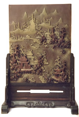 【鎮(zhèn)館之寶——五彩石雕講解】這是一塊用天然五彩石雕雕刻而成的一幅明代晚期的作品,反映的是宋代人日常生活的一幅“漁樵耕讀圖”。其中可見漁夫在水中撒網(wǎng),樵夫在山中伐木,橋面上有牧童牽牛,窗臺上可見書生捧書,作者根據(jù)五彩石的自然顏色,布局精純,雕鏤細微,一尺之中包羅萬象,F(xiàn)在經(jīng)故宮愽物院的專家反復考證,認為這塊五彩石雕具有極高的收藏價值,受到了包括沈從文.黃永玉 等大師的高度贊譽,被譽為秀華山館的“鎮(zhèn)館之寶”。 |