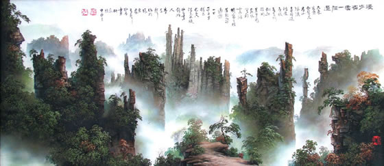 李軍聲創(chuàng)造的砂石畫,大膽突破傳統(tǒng)繪畫用材,利用自然植物的色相創(chuàng)造性地衷用自然,極具藝術(shù)價(jià)值與收藏。他說(shuō)過(guò):“一件精美的藝術(shù)品不受材料和技巧的束縛,而取決于創(chuàng)作者的心靈感悟”。軍聲畫院和軍聲砂石畫就是這樣一處閃爍在張家界自美景中的,獨(dú)具藝術(shù)魅力的人文景觀。