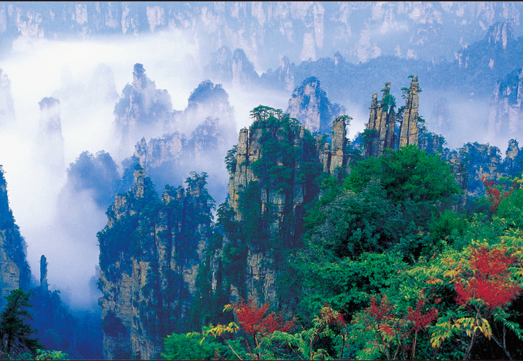 御筆峰被公認(rèn)為是武陵源砂巖大峰林風(fēng)光的標(biāo)志景點(diǎn),不斷出現(xiàn)在海內(nèi)外各種媒體和宣傳品上面,堪稱天下一絕。本來(lái),這是大自然鬼斧神工的神來(lái)之筆,科學(xué)上講是歲月風(fēng)化、浸蝕、切削的結(jié)果,但民間卻把它與向王天子聯(lián)系在一起,說(shuō)是向王天子殉難后,他的御筆化成石峰,廝守在神堂灣邊;而裝御筆的“簽筒”、“筆架”則留在水繞四門(mén)。然而,千古興亡,時(shí)代更迭,“古今多少事,都付笑淡中”。只有這支“御筆”還在!在詩(shī)人眼中,好用它來(lái)寫(xiě)瀟瀟灑灑的霧,寫(xiě)多姿多彩的云,寫(xiě)火一般熱烈的朝霞,寫(xiě)夢(mèng)幻般純潔的月光,寫(xiě)“高處不勝寒”的冰雪世界。當(dāng)然,也可以寫(xiě)您熱戀這方山水或者熱戀某位紅顏知己的情詩(shī)。