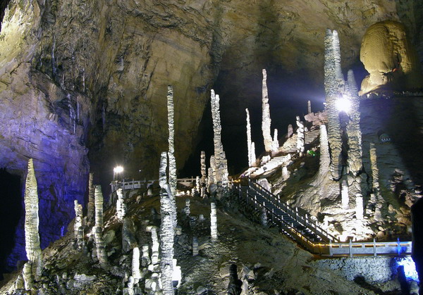 黃龍洞屬典型的喀斯特巖溶地貌,現(xiàn)已探明總面積48公頃,全長(zhǎng)15公里,垂直高度140米,內(nèi)分二層旱洞,二層水洞。黃龍洞洞中有洞,洞中有河,由石灰質(zhì)溶液凝結(jié)而成的石鐘乳、石筍、石花、石幔、石枝、石管、石珍珠、石珊瑚等洞穴景觀遍布其中,無(wú)所不奇,無(wú)奇不有,仿佛一座神奇的地下“魔宮”。